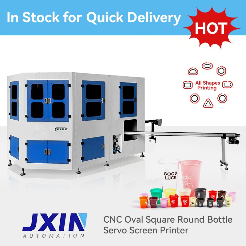 Fully servo motor driven , the machine can be availabe for round, oval, square plastic and glass bottle, print up to 3000 times per hour easily. Manual Jar/bottle placing on the conveyor belt and automatic pick-up, accurate 2 color screen printing, unloading can greatly reduce labor intensity of workers and improve production efficiency. Equipped with pre-press electrostatic dust removal system and sensor detection system, improves the quality of product printing and the flexibility of printing operations.It is a preffered option for printing of the glass bottle and glass jar packing manufacturer.